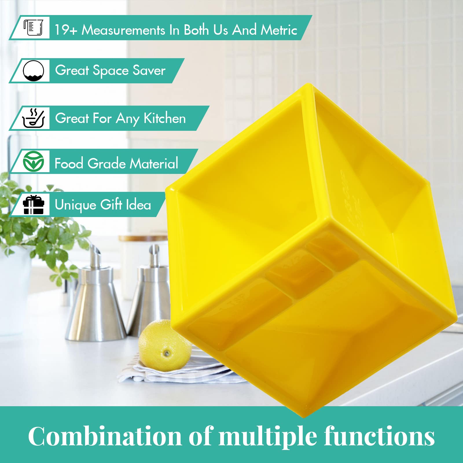 Kitchen Measuring Cube All In One Measuring Cup Premium Measuring Device With 19 Chef S Measurements For Cooking And Baking Yellow Amazon De Home Kitchen