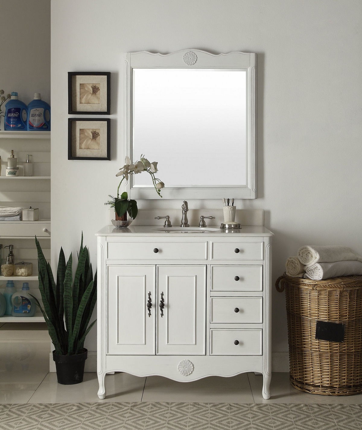 38 Inch Bathroom Vanity Cottage Style Distressed Antique White Color With 3 Drawers 38 Wx21 Dx35